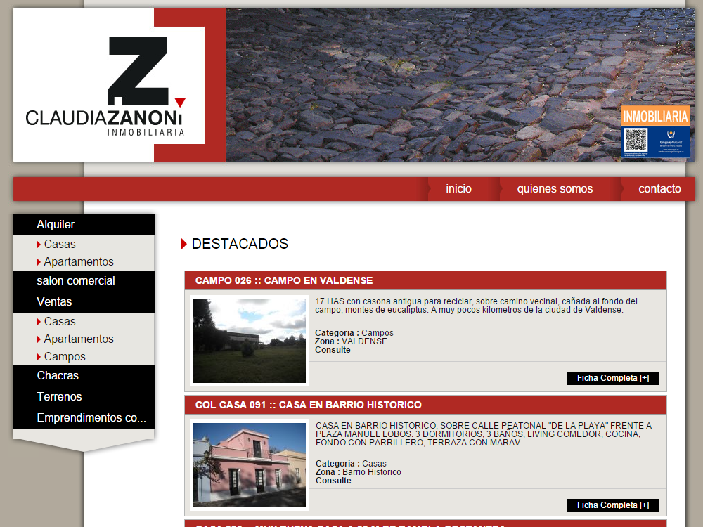 Desarrollo de sitio web para inmobiliaria Zanoni.